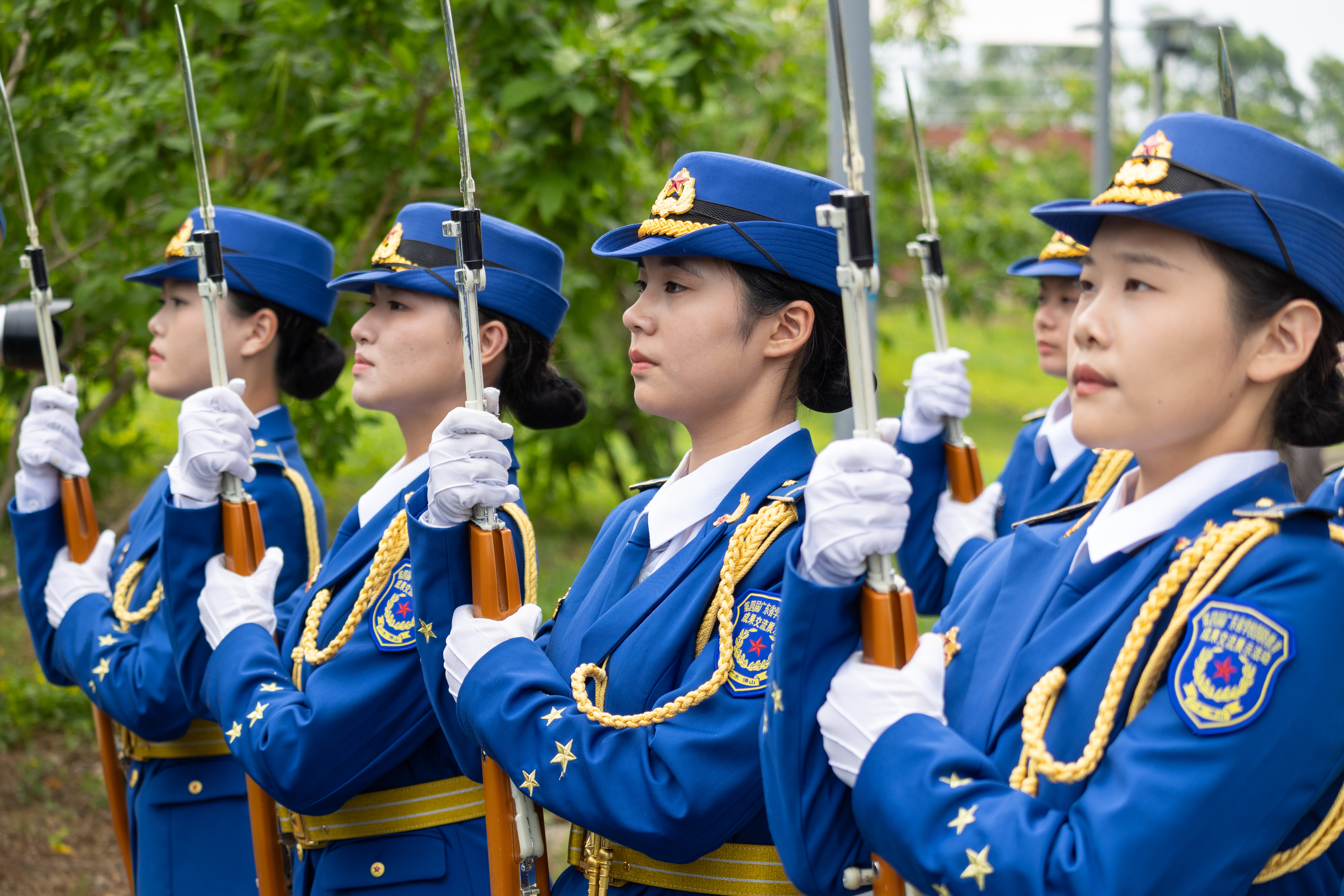 5月10日上午,距离赛前1小时,队员们凝望手中的国旗,那抹鲜红早已烙印在心底,成为支撑他们跨越60天艰苦训练的精神坐标。决赛入场前的间隙,“跟着节奏走,咱们绝对行!”队员之间相互鼓励,后勤队员则穿梭在队伍中细致检查着上场成员的着装。当站在决赛场上,国旗护卫队队员们眼中闪烁着坚定的光芒,那是对国旗的忠诚与热爱。