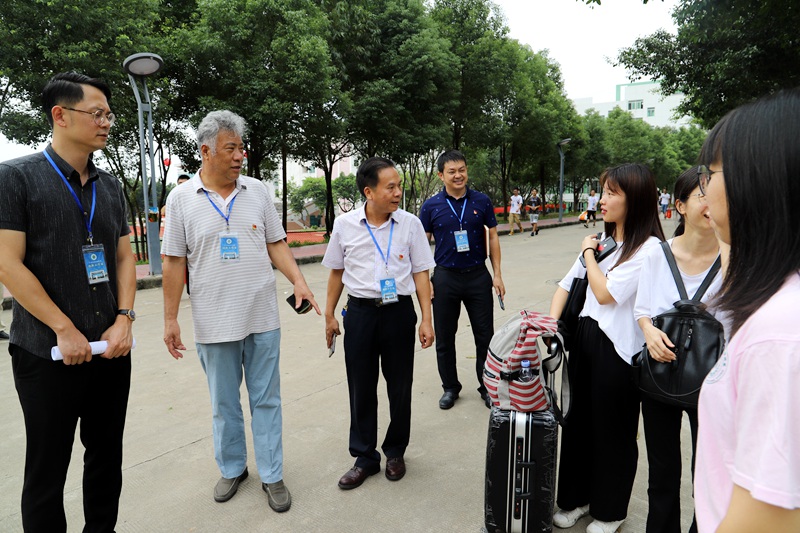 在新生入学“绿色通道”办理点,副书记李金飞、招生办公室主任欧仕身与新生及家长亲切交谈,询问新生们的报到、住宿情况,对他们来校学习表示欢迎,并期待他们尽快适应学校的校园环境、生活环境、学习环境,尽快融入新的学习环境。