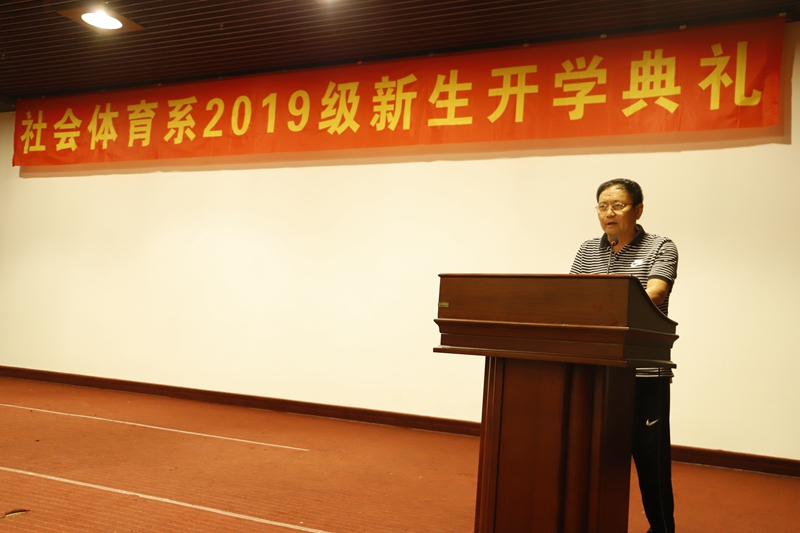 张军主任在典礼上表达了对19级社会体育系新生与对到会人员的欢迎,他表示,大学是人生的重要阶段,并鼓励新生们“以勤为动力,以志为方向”,找到属于自己的人生舞台。王会娟副主任向19级新生介绍了社会体育系的基本情况,并说明了未来社会体育系的规划和发展前景,并表示该系全体人员将会更加坚定地实现未完的目标。