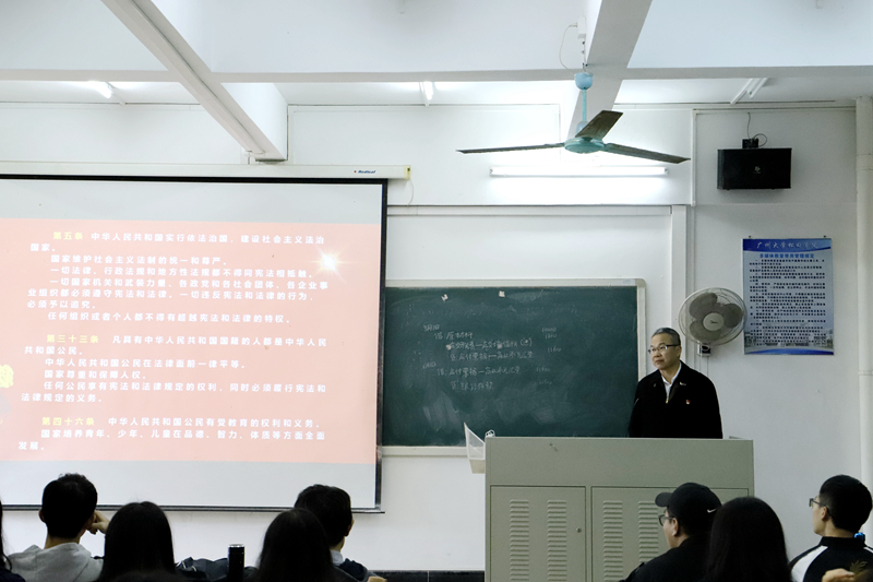 在国家宪法日当天,法政系也根据广州市增城区的统一安排,在该区参与普法活动,由法学专业的师生代表,向普通市民进行普法宣传,并提供法律咨询。