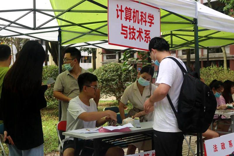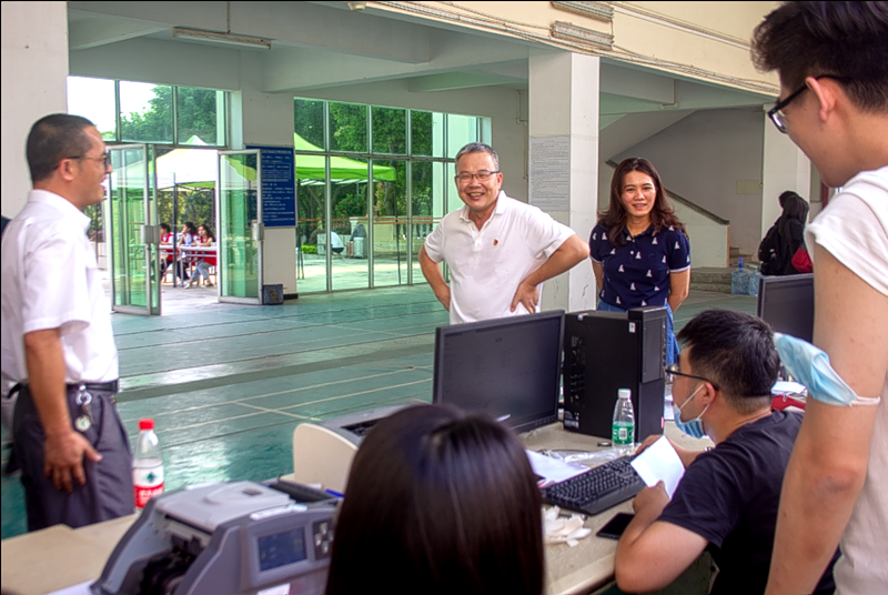 在报到日当天,我校在做好“迎新”的同时,全面做好疫情防控准备工作,从校门口进校的出示穗康码、出示录取通知书、填写健康登记表,再到行李消杀,全部按防控指引开展。