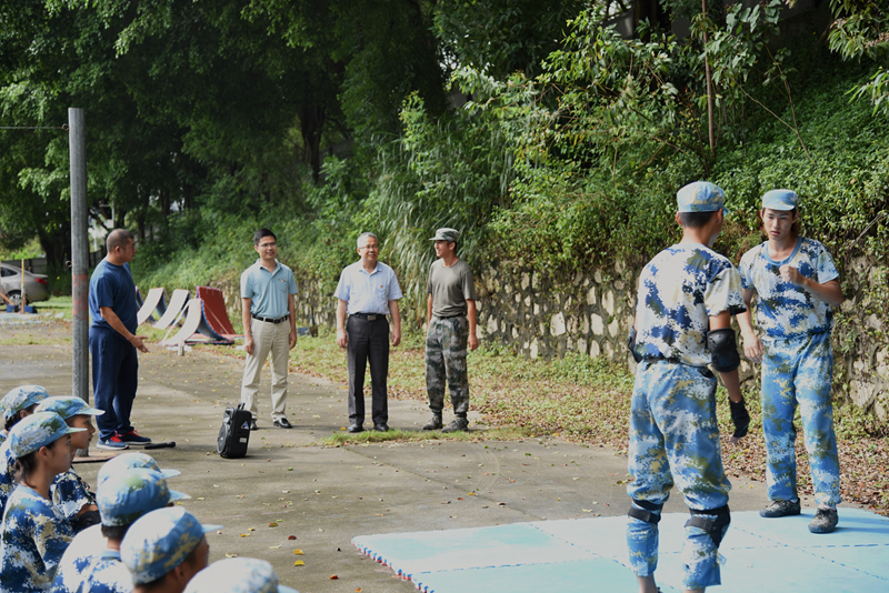 王永云书记在军训场地观看了参训新生的训练情况,与承训教官、参训新生亲切交谈,听取承训教官关于军训组织情况的介绍,详细了解军训工作的进展情况,对全体参训新生表示慰问,并特别关照参训新生的身体状况,随后检阅了特战队的训练成果,并提出训练意见。他对承训教官的辛苦付出表示感谢,对教官的科学实训和严格要求表示赞扬,肯定了参训的大一新生所表现出来的良好精神面貌。他强调,要保证全体参训新生安全、顺利地参与训练,确保本次军训任务顺利完成。