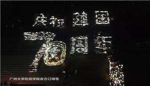 9月17日晚上,当音乐歌声响起,我校正在军训的2000多名2019级新生瞬间打开自己手机的手电灯光,组成一片灯海,表白我最亲爱的祖国。从高空航拍可以清晰的看到 2019级新生组成的“灯海” 正是8个清晰的大字: 庆祝建国70周年