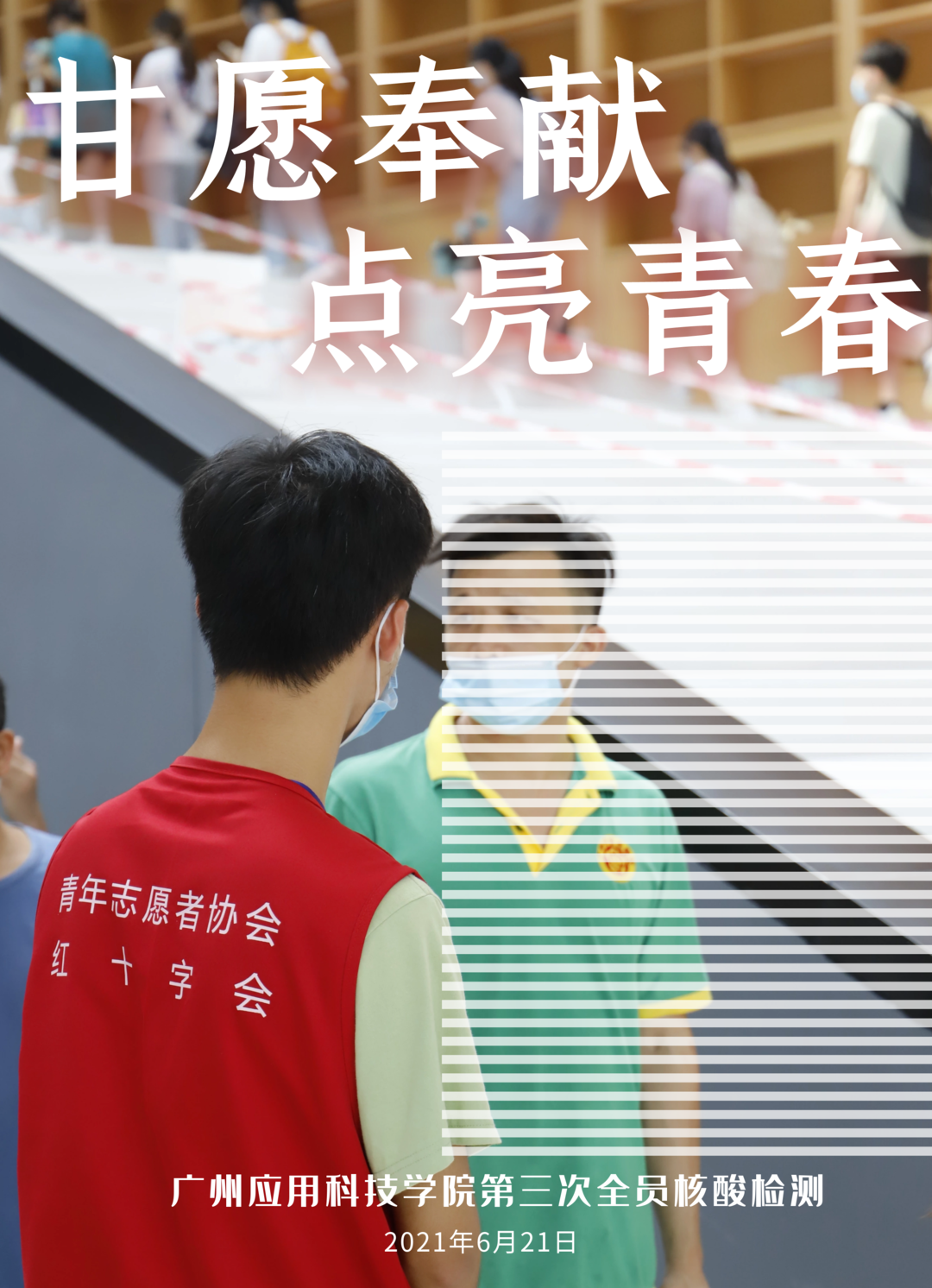 在展开的检测过程中,可以看到,检测现场处处都是认真工作的志愿者们的身影。他们分别来自两院校青年志愿者协会、红十字会、校团委、各院系党务小组,还有增城区政府安排前来支援的党员志愿者、朱村街防疫办,共有上百名人员参与其中,多个部门联动,协助配合,认真负责地完成了工作。
