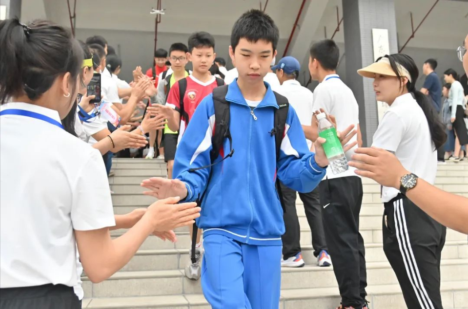 体育连接心灵,山水校园,文礼学府,以情相系,青少年的健康成长需要鼓励。广州应用科技学院高度重视承办此次攀岩赛,值得一提的是,在开幕式中的运动员出场,也独具策划、独具仪式感。出席开幕式的所有领导嘉宾、全体裁判员移步篮球馆外大门,分列两排,夹道欢迎183名青少年运动员一一步出会场前往赛场,并和所有运动员一一击掌加油,场面热情而激励