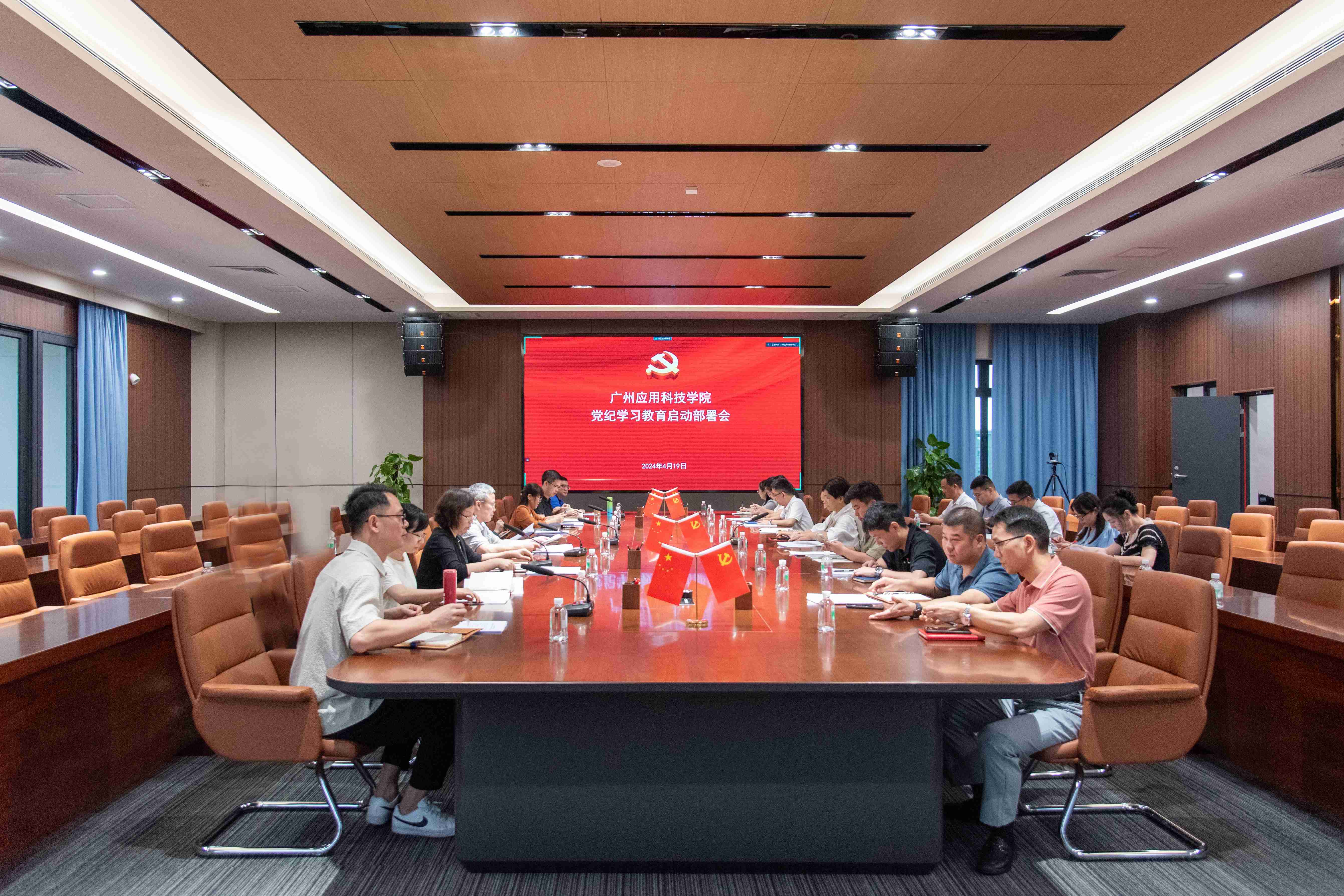 4月19日,广州应用科技学院召开党纪学习教育动员部署会,深入学习贯彻习近平总书记关于党纪学习教育和全面从严治党的重要讲话、重要指示精神,贯彻落实中共中央办公厅印发的《关于在全党开展党纪学习教育的通知》精神,部署开展学校党纪学习教育工作。学校党委书记王永云出席会议并作动员讲话,学校党委委员、党员校领导、党政部门主要负责人、各直属机关党支部、二级学院党委(副)书记参加会议。会议由校党委副书记、纪委书记刘志新主持。