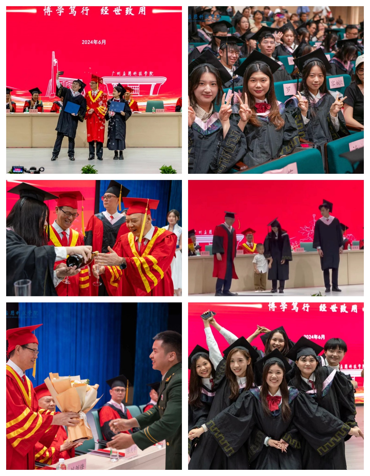 6月26日上午,我校(肇庆校区)2024届学生毕业典礼暨学士学位授予仪式在肇庆校区图书馆小礼堂举行。这是我校转设更名之后,以广州应用科技学院之名招收的第二届普通专升本学生,也是肇庆校区的第二届学生正式毕业。广州应用科技学院校长刘剑锋,执行校长张光宇,党委书记王永云,副校长刘志新、李荆松,校长助理吴明生、李根珍,学校财务总监姚满金出席毕业典礼,学位评定委员会委员,各二级学院院长、党委书记(副书记)、相关职能部门负责人、教师代表、家长代表、肇庆毕业生代表以及2020级毕业班辅导员参加肇庆校区毕业典礼。本次毕业典礼由副校长刘志新主持。