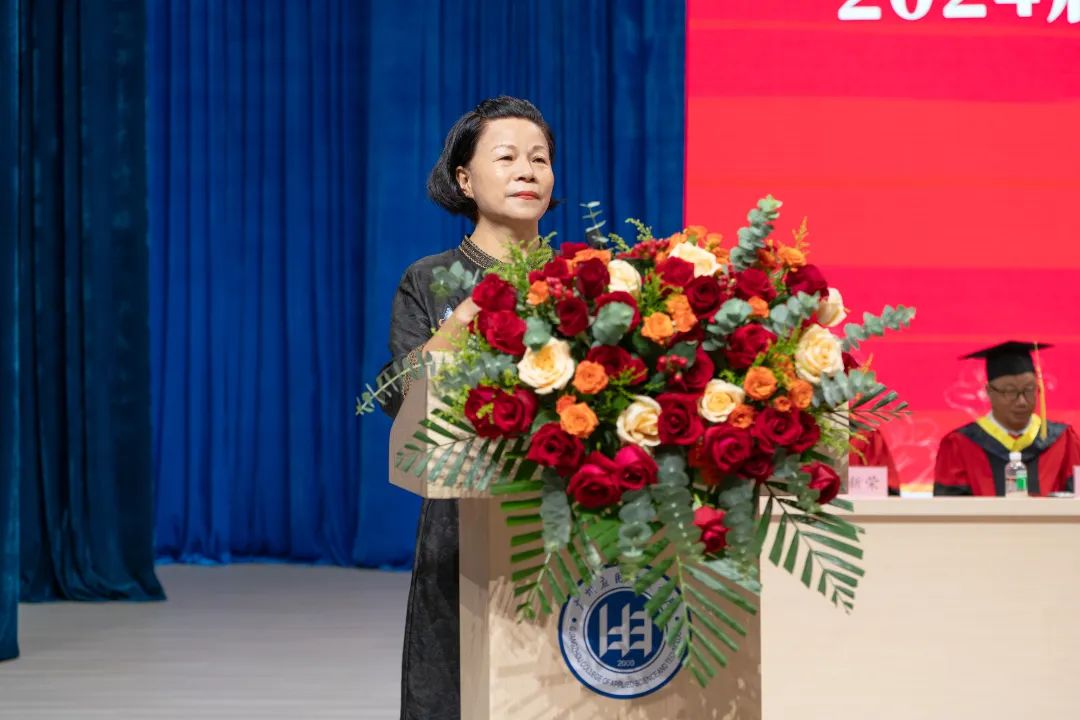 张光宇执行校长在毕业典礼上讲话,他首先代表全校师生员工,向肇庆校区2561名2024届毕业生表示热烈的祝贺!向默默耕耘在教育第一线、辛勤付出的老师们致以最崇高的敬意!向一如既往地支持学校教育工作的家长们表达最诚挚的感谢!张光宇执行校长表示,回顾过往,时光荏苒,岁月如歌。肇庆校区2024届毕业生来自于2022年入学的专升本学生, 在过去的2年里,结识了来自五湖四海、志同道合的朋友;用勤奋和智慧探寻着世界的奥秘,参与了专业学习实训和项目竞赛等实践活动;将理论知识与实际操作相结合,在专业实践的舞台上历练,校园的每一寸土地,都承载着同学们的汗水与欢笑,见证着的成长与蜕变,参与了学校的高质量发展。