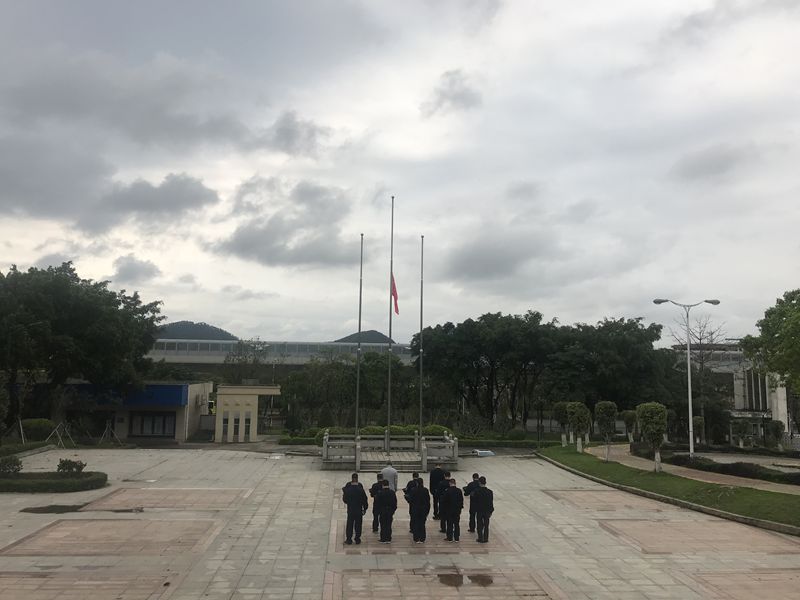 庚子清明,举国哀悼。4月4日上午,为表达对抗击新冠肺炎疫情斗争牺牲烈士和逝世同胞的深切哀悼,我校校长庞永师带领正在校内值班的干部和保卫处人员,在国旗台前参加悼念仪式。